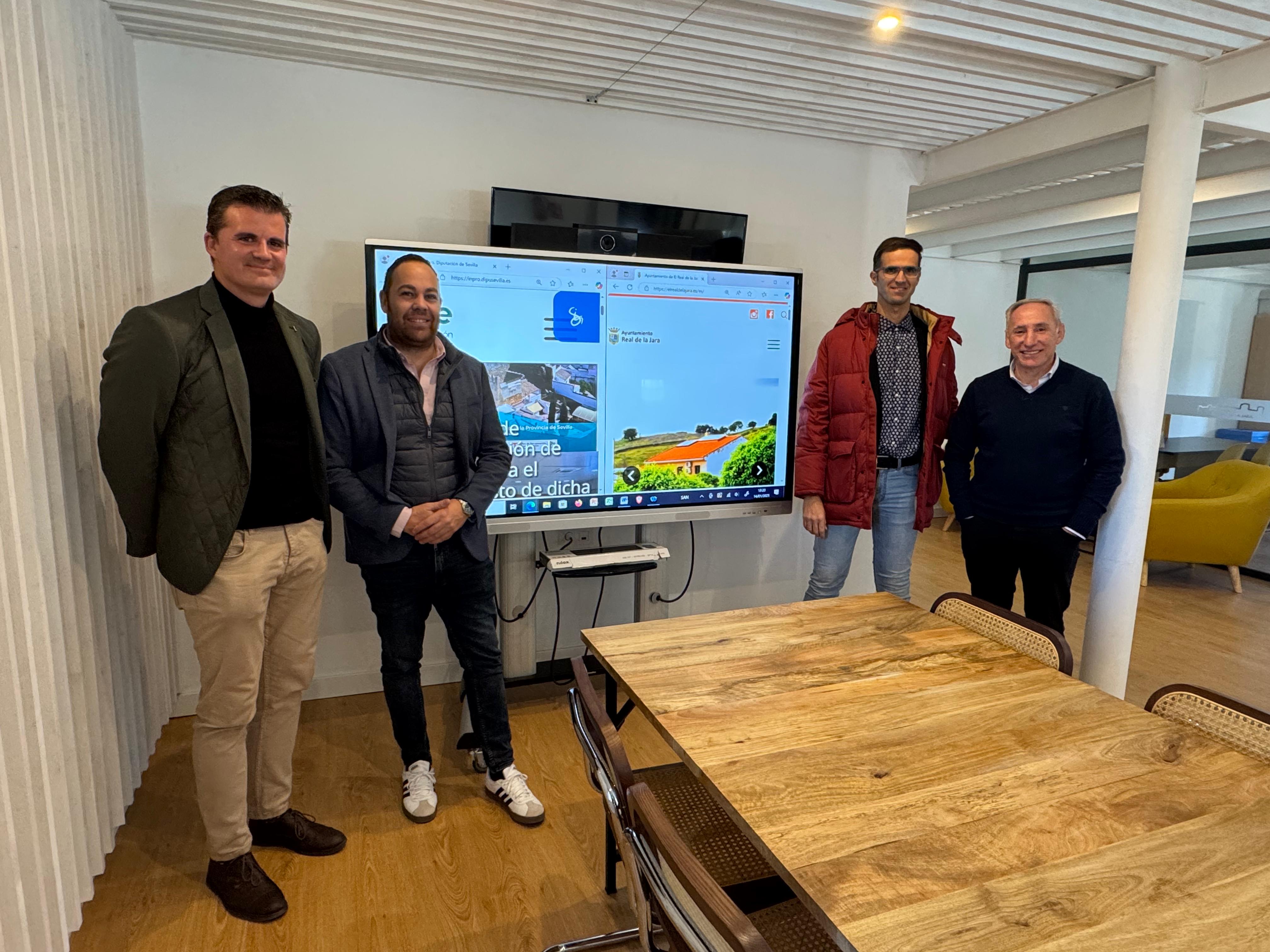 El alcalde de El Real de la Jara acompañado del vicepresidente de INPRO comprueban in situ el funcionamiento electrónico de las distintas áreas de gestión del Ayuntamiento