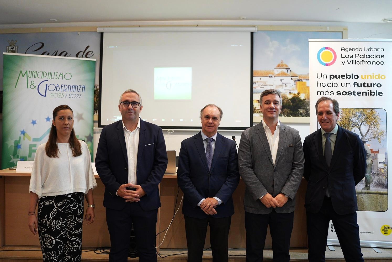 En la inauguración de la sesión, junto al vicepresidente de Prodetur han participado el alcalde de Los Palacios y Villafranca, Juan Manuel Valle, el delegado territorial de Empleo, Empresa y Trabajo Autónomo, Antonio Agustín Vázquez, y la secretaria general de la FAMP, Yolanda Sáez.