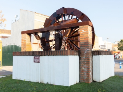 Noria decorativa en rotonda cruce de las carreteras a villaverde del río y tocina Comarca: VEGA Municipio: Brenes Edicion: SUPERA I (2014) Ver ubicacion