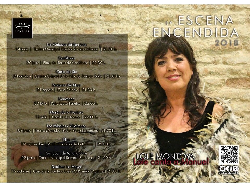 Descargar pdf viernes, 19 de octubre de 2018 / Sanlúcar La Mayor / Cultura y Juventud ESCENA ENCENDIDA 2018: LOLE MONTOYA "Lole canta a Manuel". Sanlúcar la mayor Descargar pdf CARTEL LOLE MONTOYA Información del evento Lugar: Casa de la Cultura José Mª Romero Martínez a las 21 horas Inicio: 19 de octubre de 2018 CARTEL ESCENA ENCENDIDA 2018 INFORMACIÓN LOLE MONTOYA INFORMACIÓN LOLE-MONTOYA 819.03 kb Formato: pdf INFORMACIÓN ESCENA ENCENDIDA SANLÚCAR LA MAYOR Y VENTA DE ENTRADAS ESCENA ENCENDIDA SANLÚCAR LA MAYOR 10519.07 kb Formato: pdf