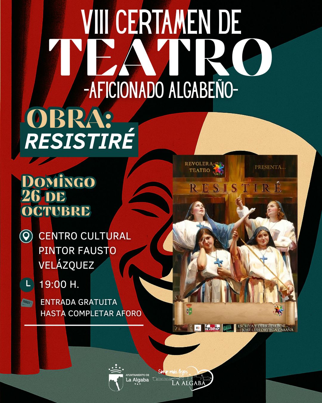 Descargar pdf Del 26 al 26 de octubre de 2025 / La Algaba / Cultura y Juventud VIII CERTAMEN DE TEATRO AFICIONADO ALGABEÑO Descargar pdf Información del evento Dirección: CENTRO CULTURAL PINTOR FAUSTO VELÁZQUEZ Web: VIII CERTAMEN DE TEATRO AFICIONADO ALGABEÑO Inicio: 26 de octubre de 2025 Finalización: 26 de octubre de 2025 HORA
