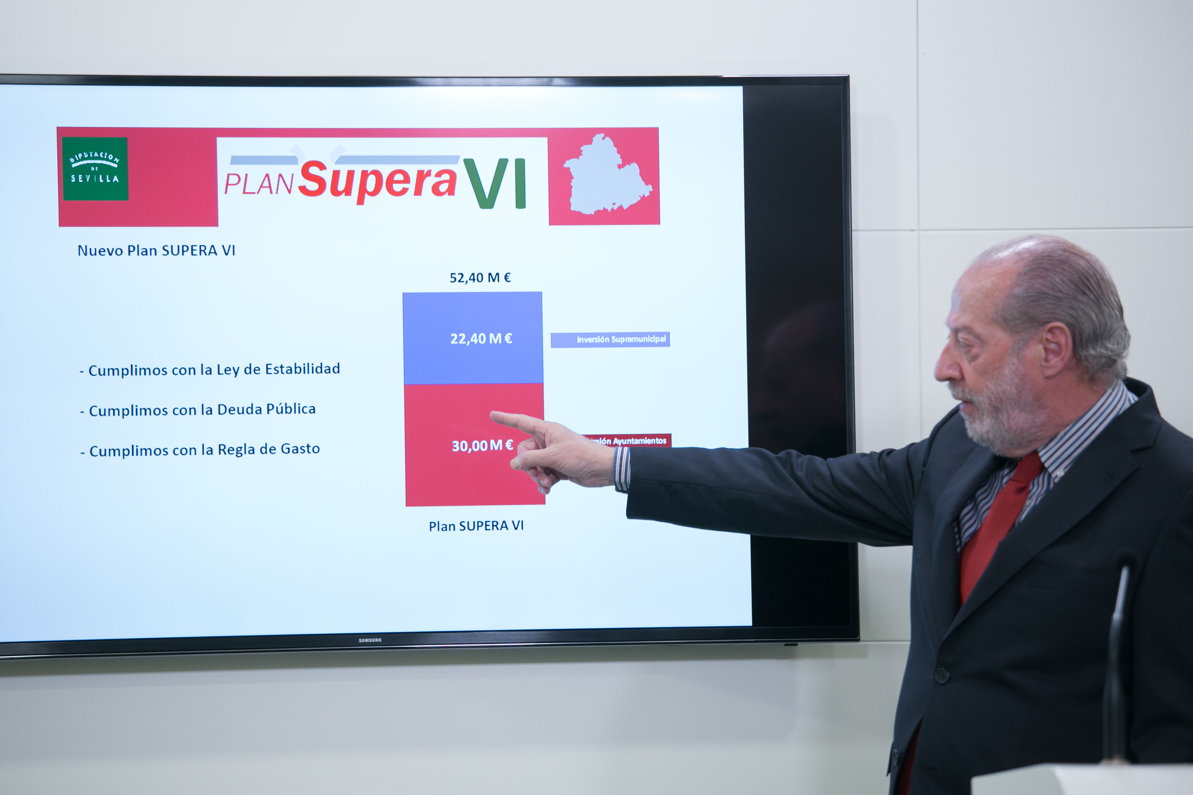 El presidente ha concluido destacando que 'el Plan Supera, con seis anualidades ya en su haber, ha inyectado 250 M€ de inversión en el territorio, lo que lo convierte en la iniciativa inversora de mayor calado en la historia de la Diputación de Sevilla'.