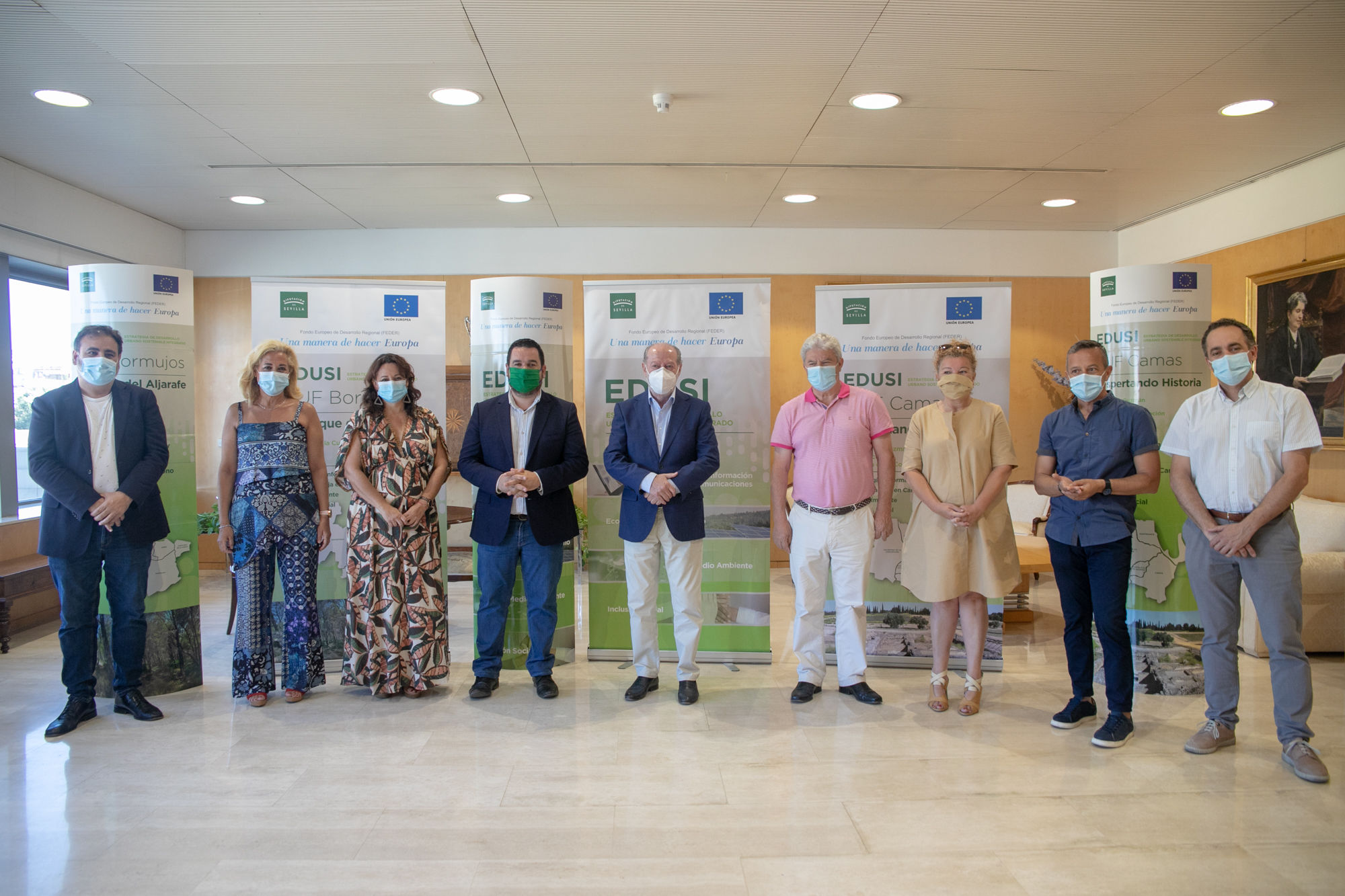 La estrategia territorial (Estrategia de Desarrollo Urbano Sostenible-EDUSI) que encabeza Bormujos abarca, además, a las localidades de Castilleja de la Cuesta, Espartinas y Gines, y cuenta con una subvención europea de 10 millones de euros, a la que se suman 2,5 millones aportados por la Diputación para cofinanciar las actuaciones del proyecto.