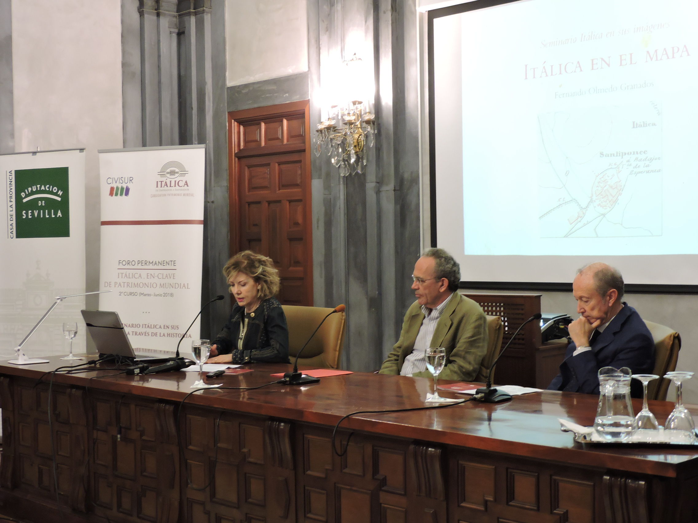El historiador Fernando Olmedo, especializado en Cartografía, ha pronunciado la conferencia 'Itálica en el mapa', disertación con la que se clausura el Seminario 'Itálica en sus Imágenes', que, dirigido por José Manuel Rodríguez Hidalgo, se ha venido desarrollando en la Casa de la Provincia de la Diputación durante cuatro sesiones.