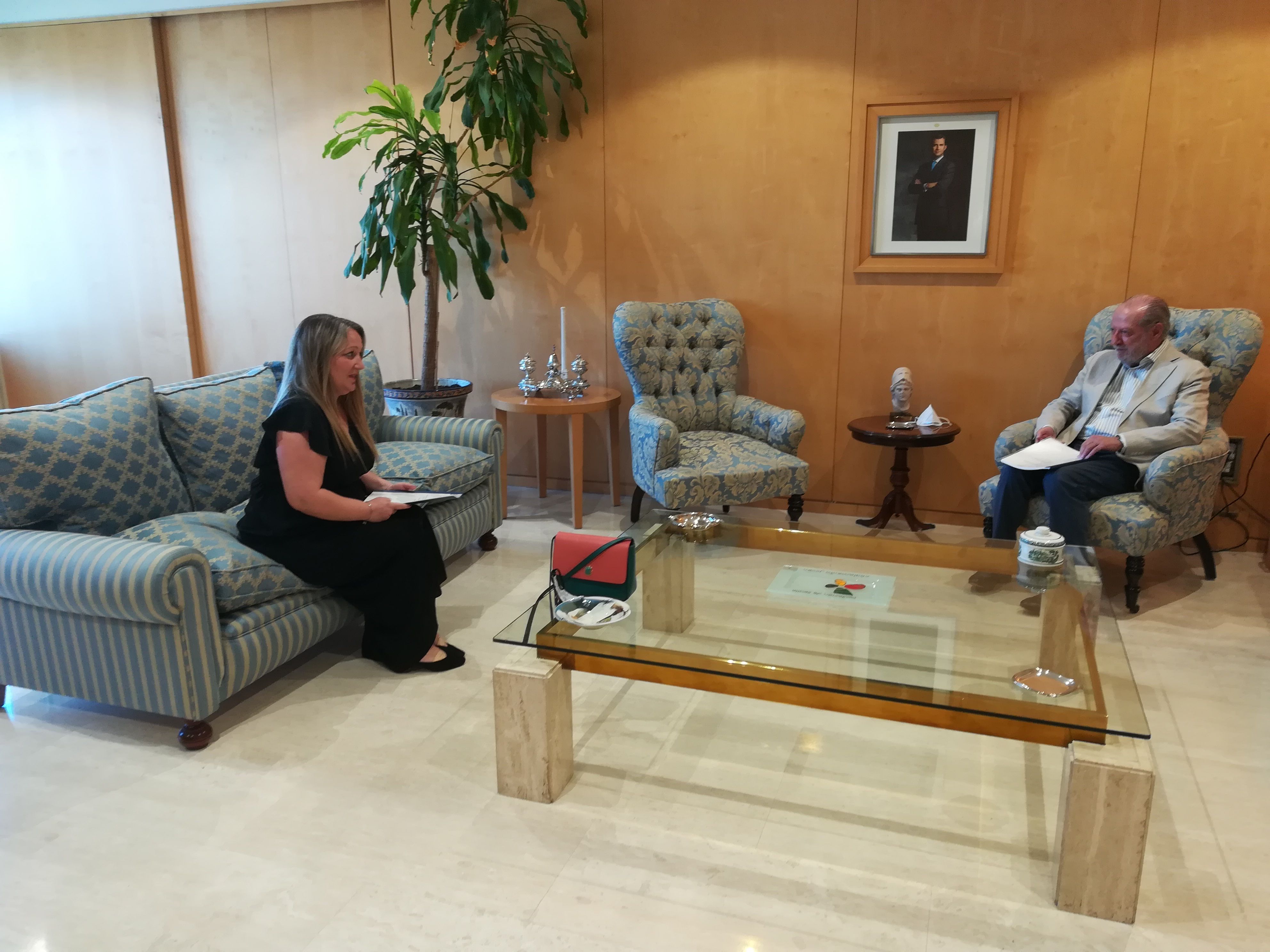 El presidente de la Diputación de Sevilla, Fernando Rodríguez Villalobos, ha recibido esta mañana a la alcaldesa de Coripe, Susana López, con quien ha mantenido una reunión de trabajo en la que han abordado importantes asuntos de índole económico para este municipio de la Sierra Sur.