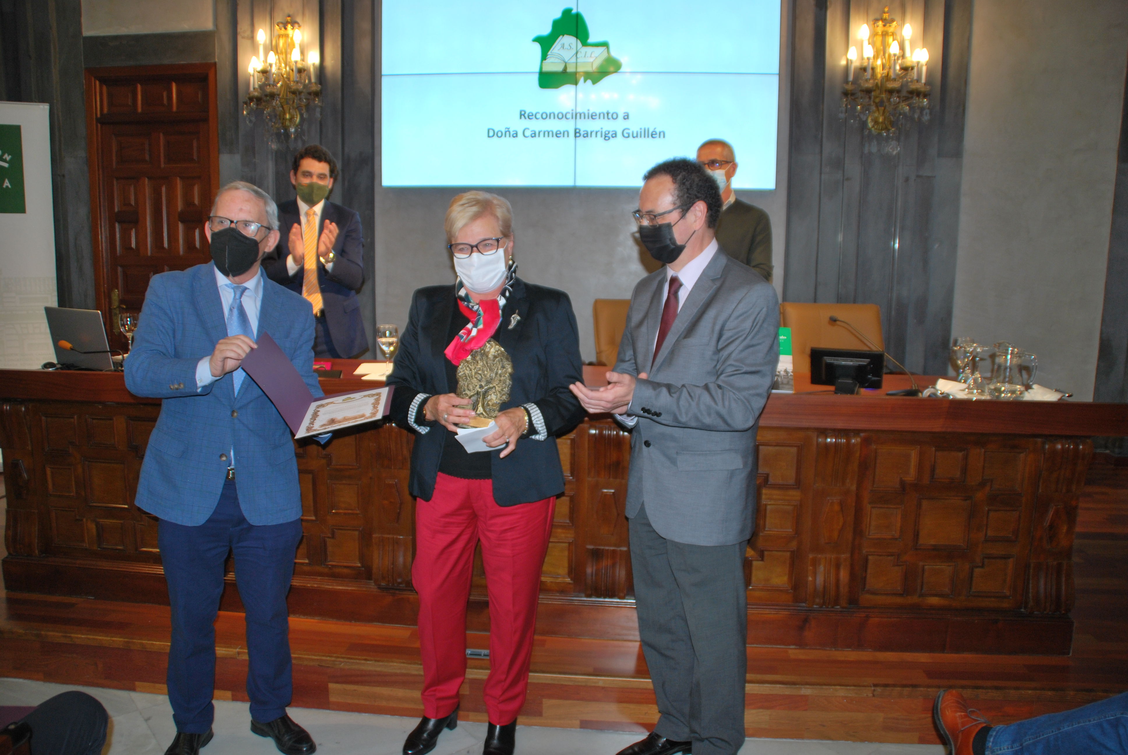 José Antonio Filter, presidente de ASCIL, hacía entrega a Carmen Barriga, en nombre de los historiadores, investigadores y cronistas locales que forman parte de la Asociación, de una estatuilla conmemorativa y diploma acreditativo de la distinción concedida, ‘en reconocimiento y agradecimiento por su entrega, generosidad y buen hacer en favor de la investigación local; por el gran trabajo desarrollado durante estos años en pro de la conservación, catalogación y difusión del importante patrimonio documental de la Diputación y de nuestros pueblos’.