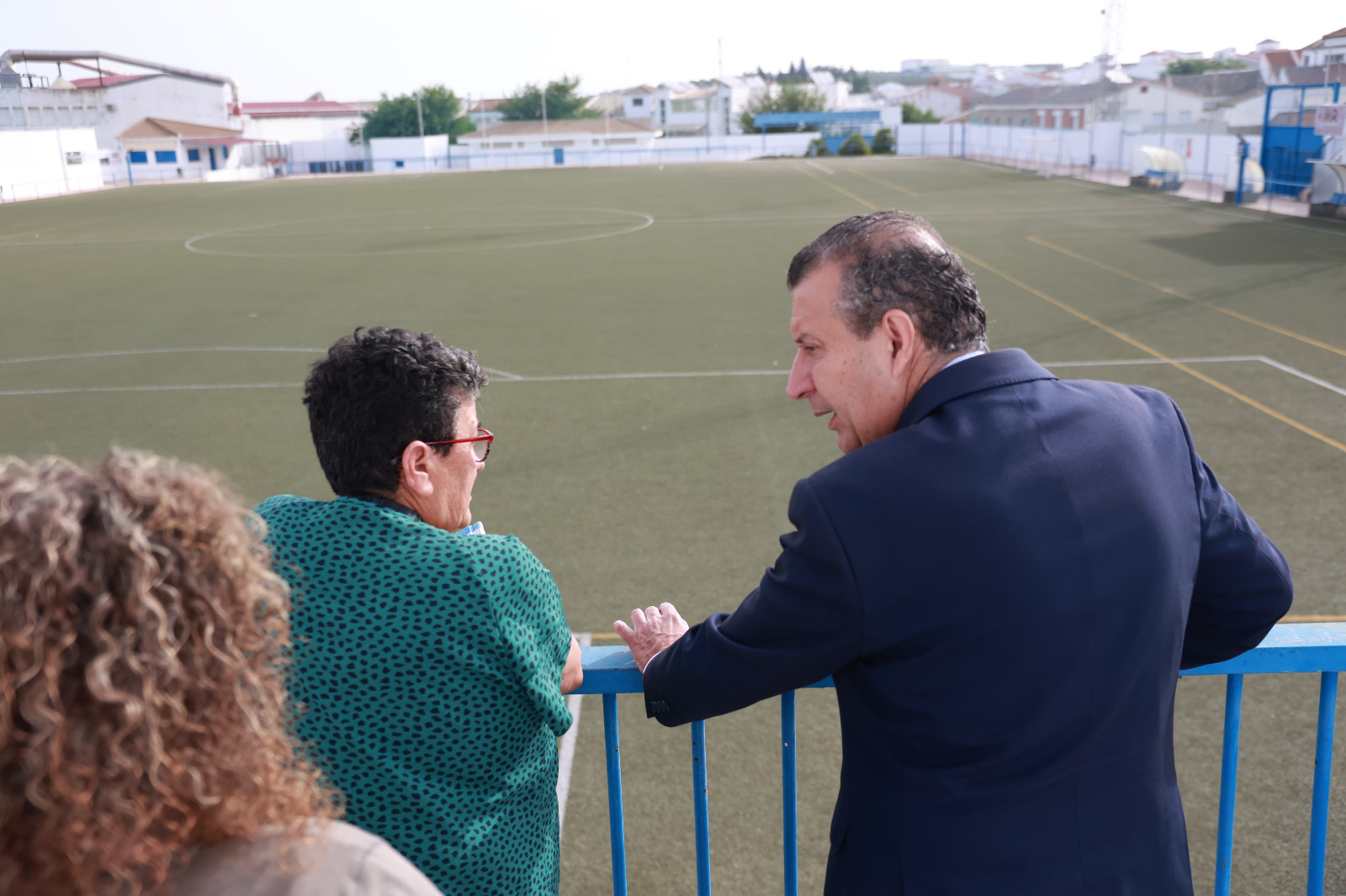 Javier Fernández también ha acudido al Campo de Fútbol Municipal, para el que hay consignados casi 850.800 euros con cargo a los planes Más Sevilla y Sevilla 107 que permitirán acometer la tercera fase de la reforma del graderío, la construcción de un nuevo edificio para vestuarios, un cuarto de lavandería y una sala de reuniones. En la primera y segunda ya se han invertido 704.000 euros.