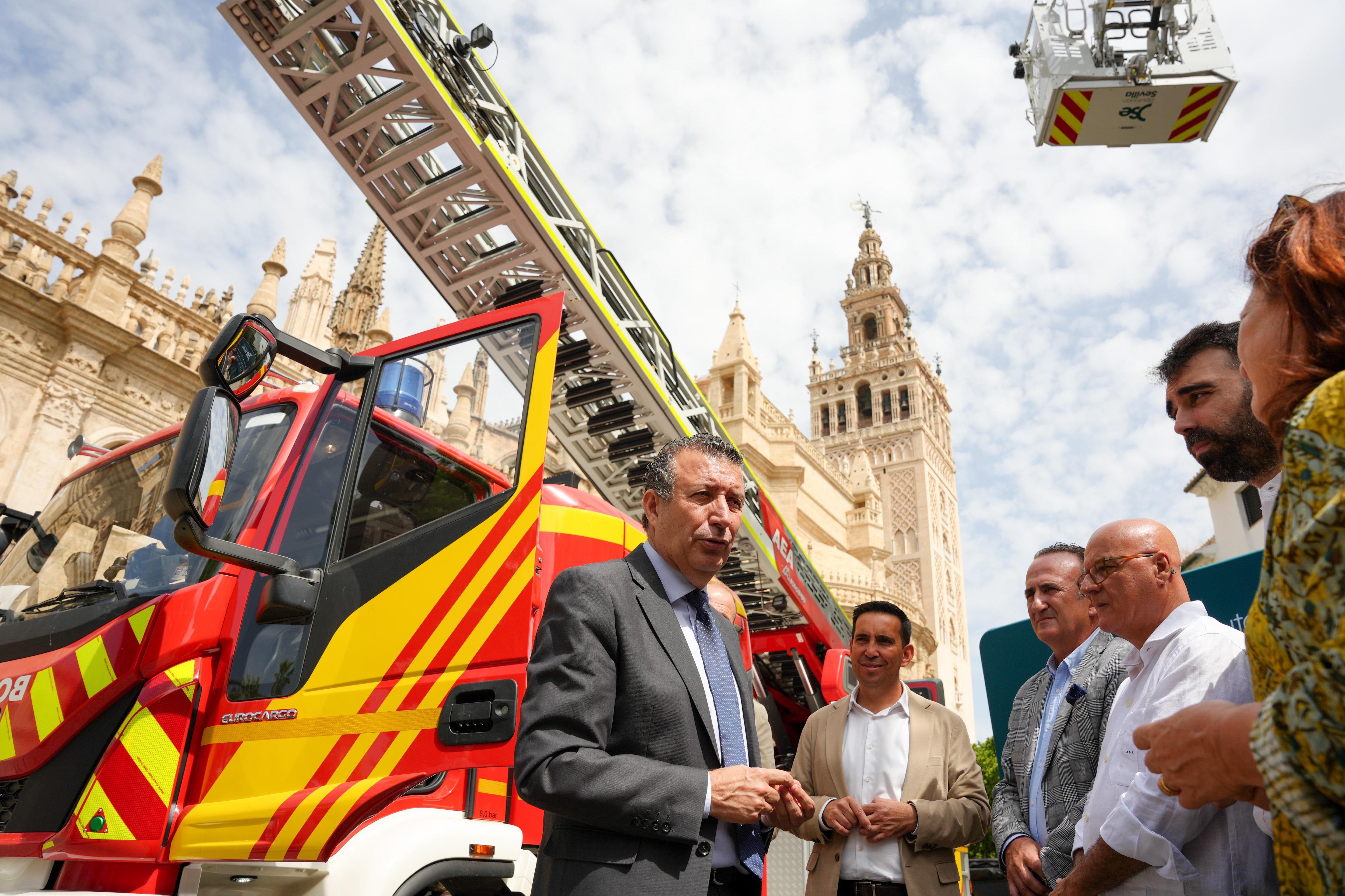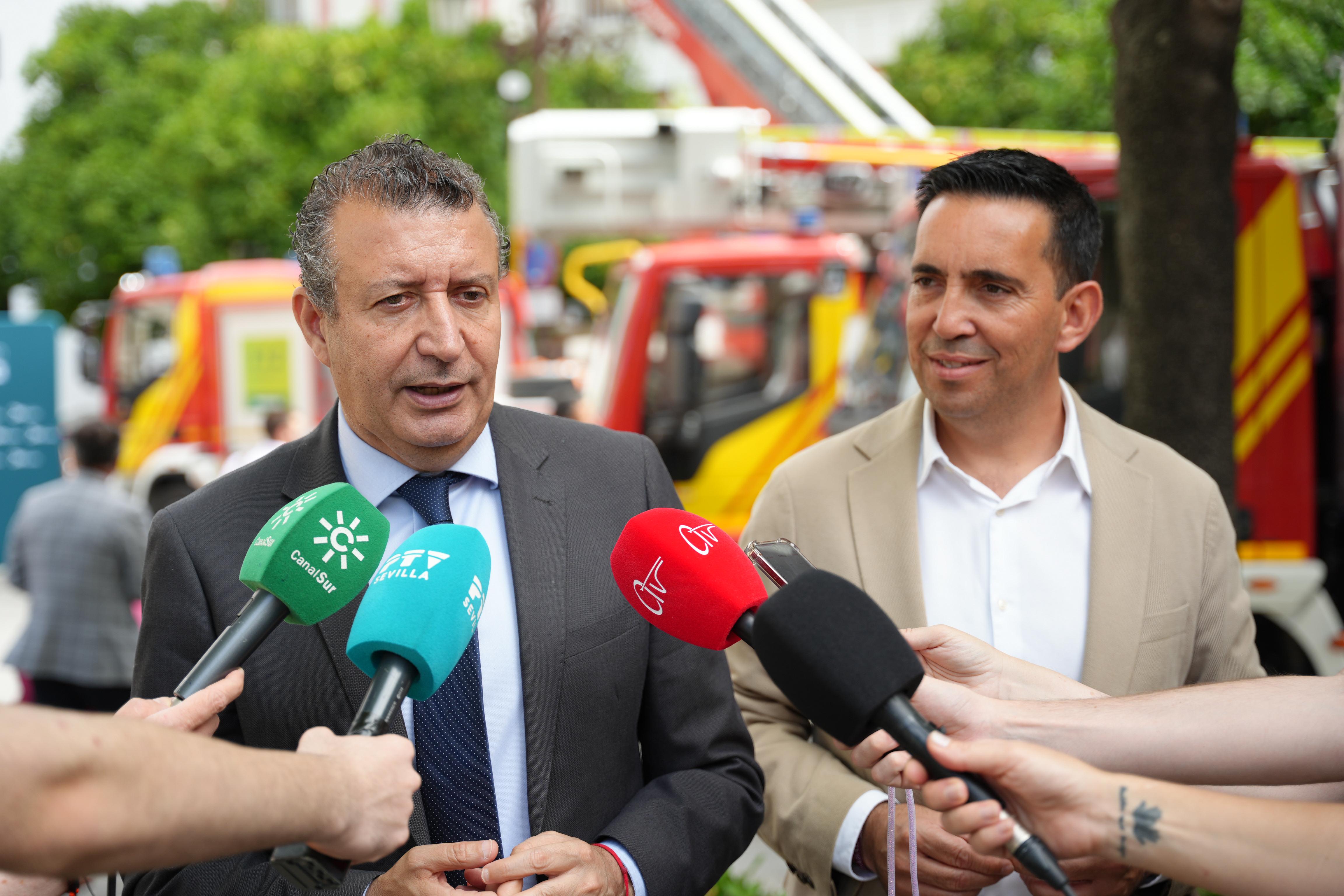 La noticia sobre este plan de mejoras en el corto plazo para los bomberos de la provincia la ha hecho el presidente provincial durante la presentación, junto al diputado provincial de Servicios Públicos Supramunicipales, Gonzalo Domínguez, de 4 nuevos vehículos Auto Escala Automática (AEA) de Bomberos, en los que se han invertido más de 3,7M€ y que se entregarán a otros tantos parques del Consorcio: Osuna, La Rinconada, Lora del Río y Utrera.