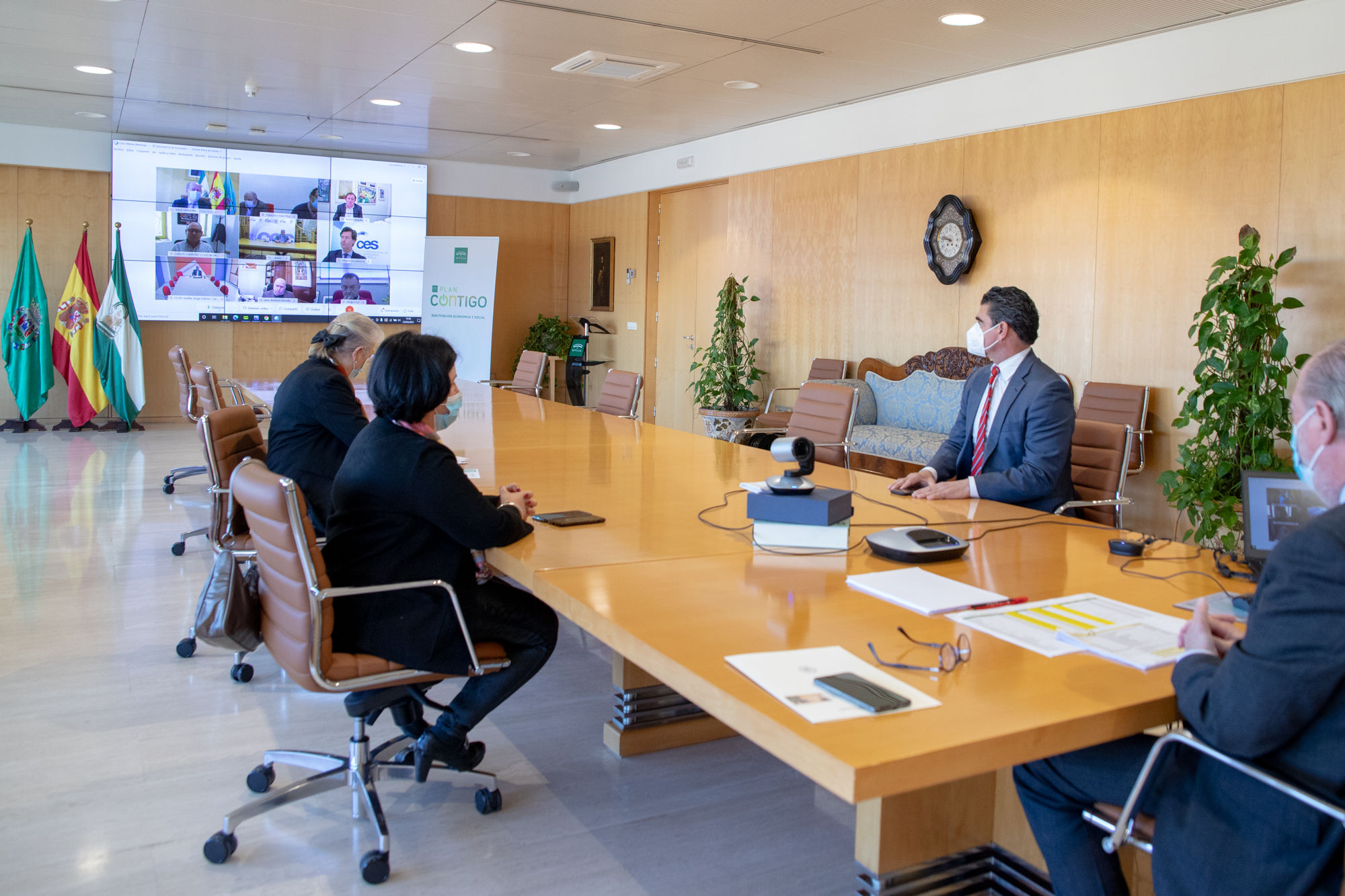 El presidente de la Diputación de Sevilla, Fernando Rodríguez Villalobos, ha mantenido hoy una videoconferencia con los agentes sociales y económicos integrantes de la Comisión de Seguimiento del Acuerdo de Concertación Social de la Provincia de Sevilla, a fin de informarles sobre el resultado de la liquidación del Presupuesto del ejercicio 2020 de la Diputación y las nuevas incorporaciones de remanentes en el Plan Contigo.