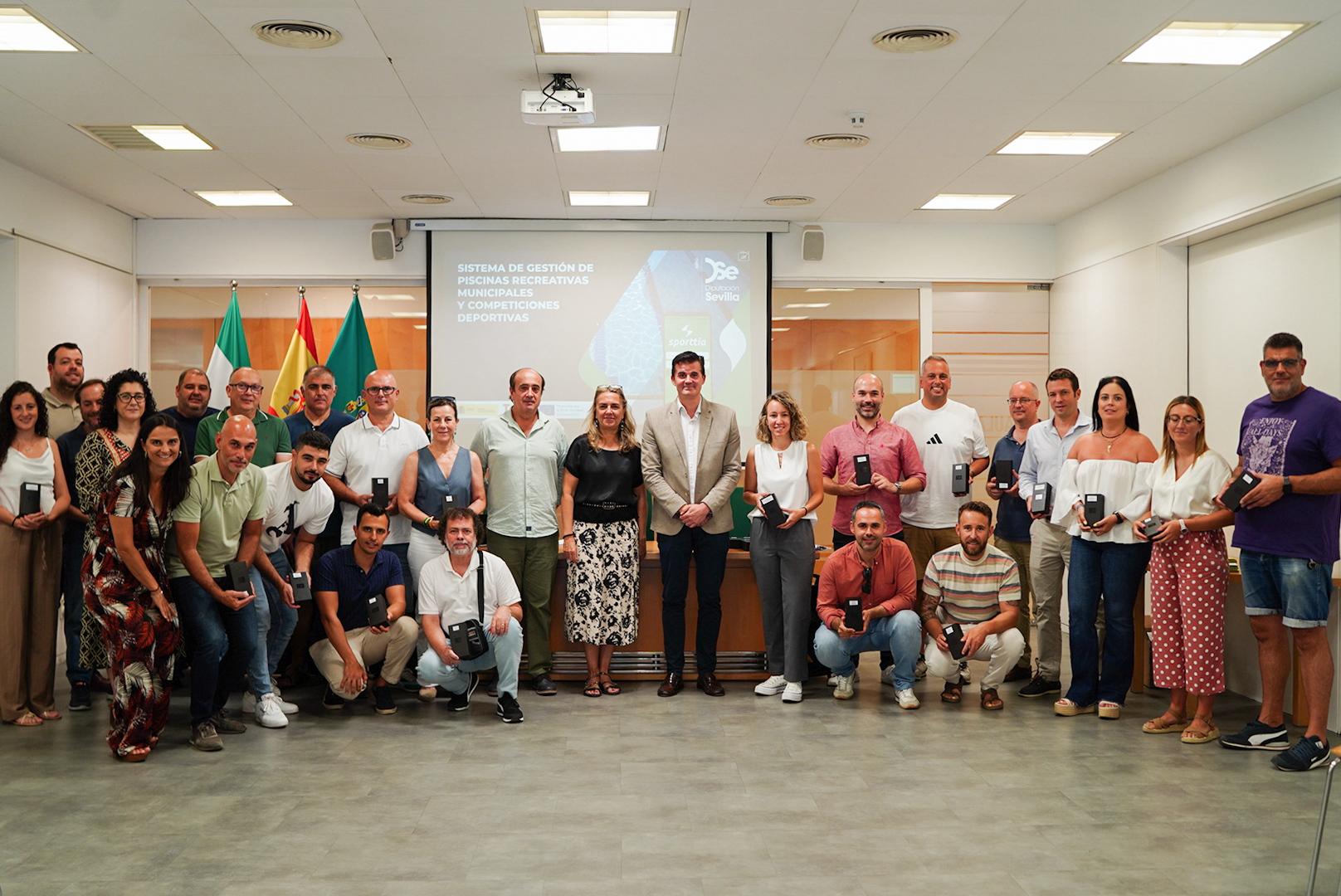 La Diputación de Sevilla, a través de la sociedad instrumental INPRO, continúa avanzando en la modernización digital de los servicios públicos municipales, esta vez centrando sus esfuerzos en el ámbito deportivo. Como parte de ese proceso de transformación, el vicepresidente de INPRO, Antonio Jesús Muñoz Quirós, ha hecho entrega de 30 dispositivos PDA a otros tantos municipios de la provincia para el control electrónico de acceso a piscinas municipales.