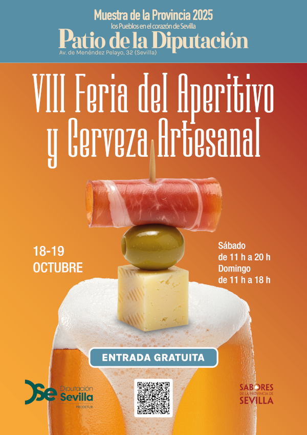 El patio de la Diputación de Sevilla acoge, este sábado, 18 de octubre, y el domingo, 19, a partir de las 11.00 horas, la VIII Feria del Aperitivo y Cerveza Artesanal, con la que arranca la Muestra de la Provincia 2025, con nueve citas hasta diciembre. Se trata de la primera de las siete ferias de productos agroalimentarios ‘Sabores de la Provincia de Sevilla’, que organiza Prodetur en el marco de este calendario de eventos.