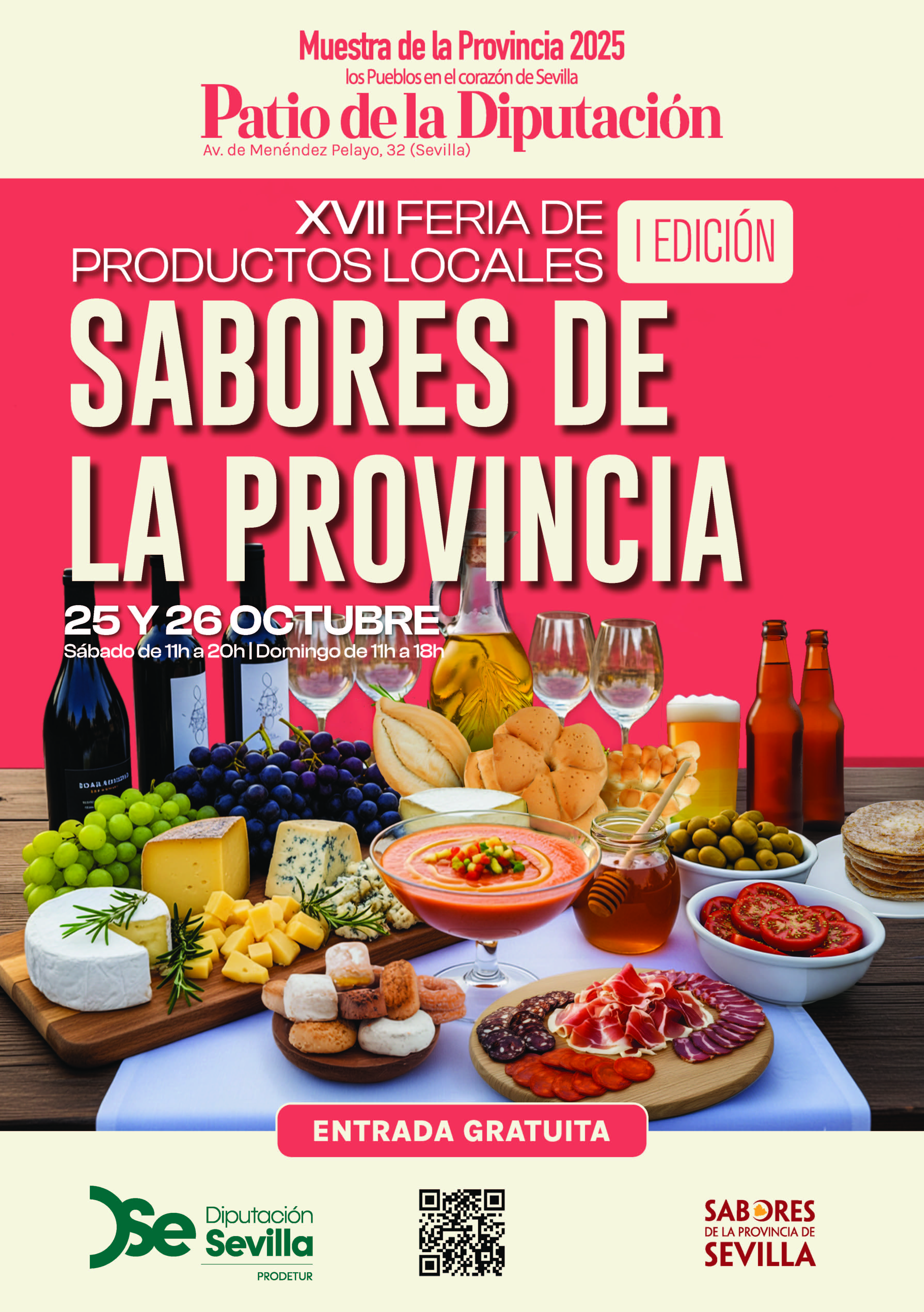 El patio de la Diputación de Sevilla acoge, este sábado, 25 de octubre, y el domingo, 26, a partir de las 11.00 horas, la XVII Feria de Productos Locales ‘Sabores de la Provincia de Sevilla’. Organizada por Prodetur, esta cita es la segunda del calendario de la Muestra de la Provincia 2025, que incluye nueve eventos hasta final de año, siete de las cuales están dedicadas a productos agroalimentarios de la marca de promoción impulsada por la sociedad provincial.