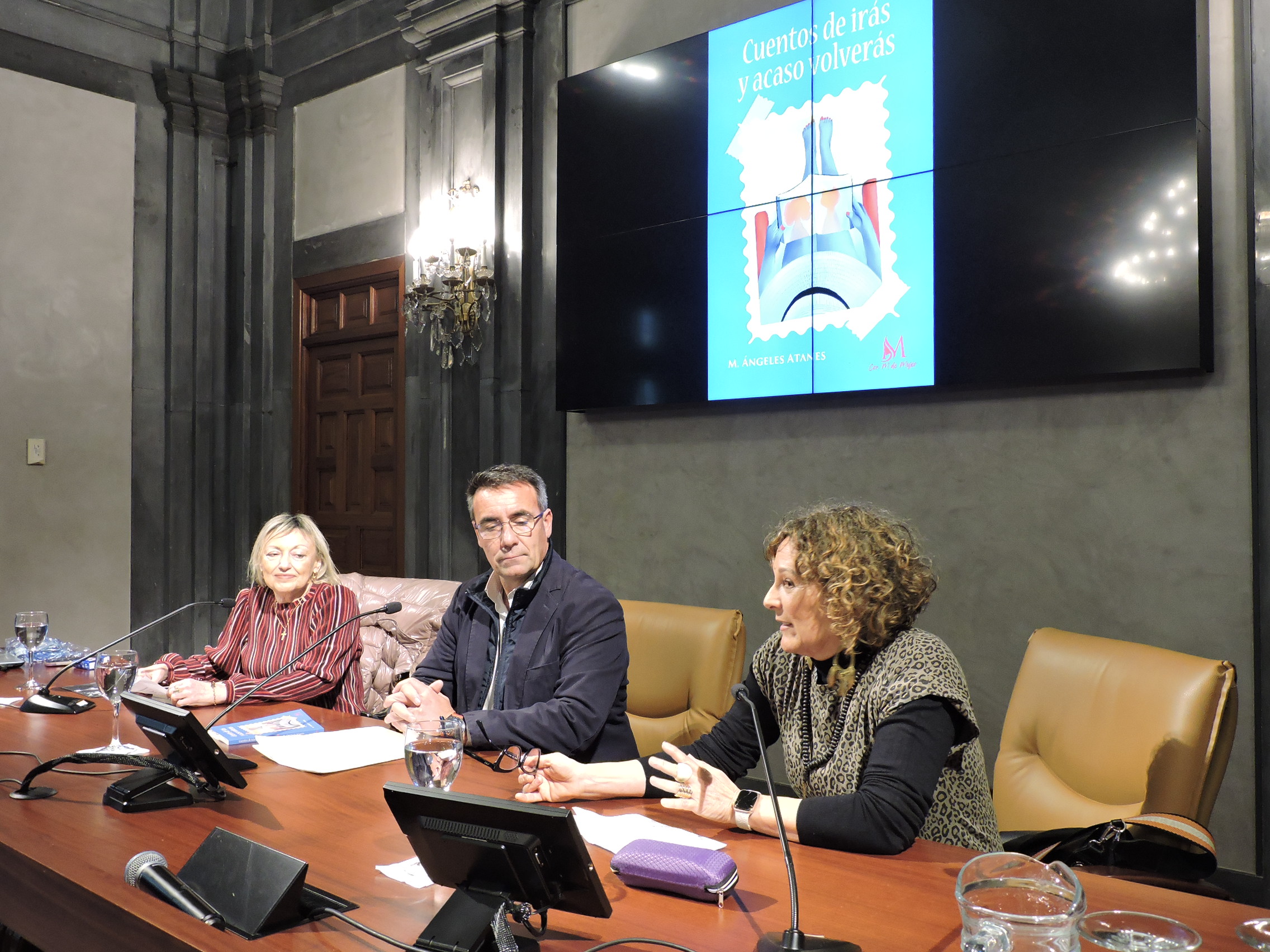 María Ángeles Atanes, profesora de Matemáticas del IES San Isidoro y escritora, ha presentado en la Casa de la Provincia de la Diputación de Sevilla su libro de relatos ‘Cuentos de irás y acaso volverás’, en un acto promovido por el Ayuntamiento de la localidad sevillana de Isla Mayor, en el que han participado junto a la autora el alcalde isleño, Juan Molero, y representantes de la Editorial conMdeMujer, que publica el volumen.