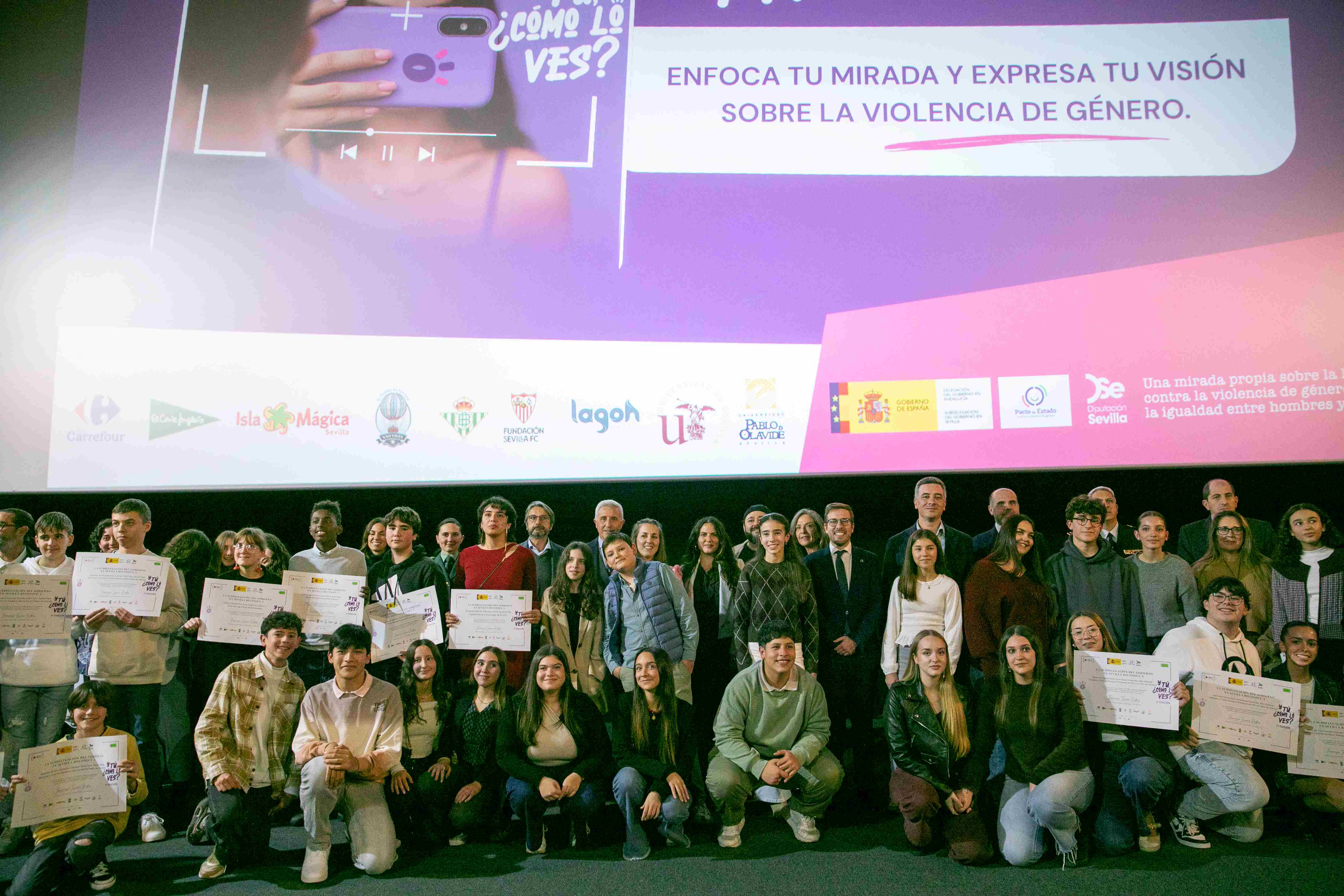 El vicepresidente de Prodetur, Rodrigo Rodríguez Hans, asistió este lunes a la Gala de Entrega de Premios de la segunda edición del concurso audiovisual “Y tú, ¿cómo lo ves?”, celebrada en Cinesur Nervión Plaza con motivo del Día Internacional de la Lucha contra la Violencia hacia las Mujeres. La iniciativa, impulsada por la Subdelegación del Gobierno en Sevilla, reunió a alumnado, docentes, representantes institucionales y profesionales del ámbito educativo y social, en un acto que pone el foco en la sensibilización contra la violencia machista a través del lenguaje audiovisual. El acto estuvo presidido por el subdelegado del Gobierno en Sevilla, Francisco Toscano.