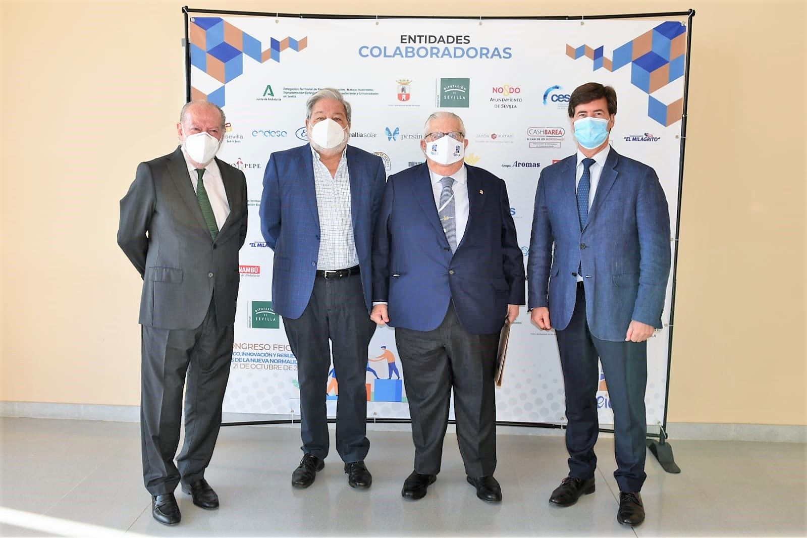 El presidente de la Diputación, Fernando Rodríguez Villalobos, ha abogado por que ninguna empresa o comercio “por muy pequeño que sea” quede atrás en el proceso de innovación “que ya es imperativo” . Así se ha expresado durante la apertura del IV Congreso de la Federación Provincial de Empresarios de la Industria y Comercio de Alimentación, Droguería, Perfumería y Afines de Sevilla (FEICASE), que cuenta con la colaboración de la institución provincial, a través de Prodetur. En la inauguración de la jornada, Villalobos ha intervenido junto al presidente de FEICASE, Manuel Barea, el alcalde de Dos Hermanas, Francisco Toscano, y el presidente de la Confederación de Empresarios de Sevilla, Miguel Rus.