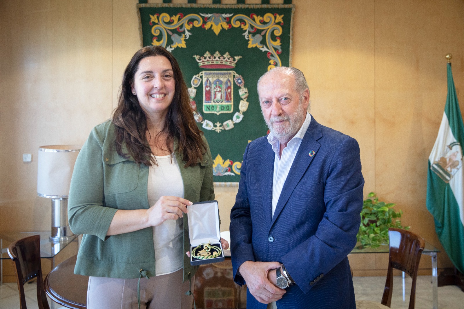 El presidente de la Diputación de Sevilla, Fernando Rodríguez Villalobos, ha entregado esta mañana la Medalla de Oro del Día de la Provincia, celebrado el pasado 6 de junio, a Pilar Manchón, que por razones de trabajo le fue imposible asistir a la gala de entrega de estos galardones que la Institución Provincial celebra anualmente.