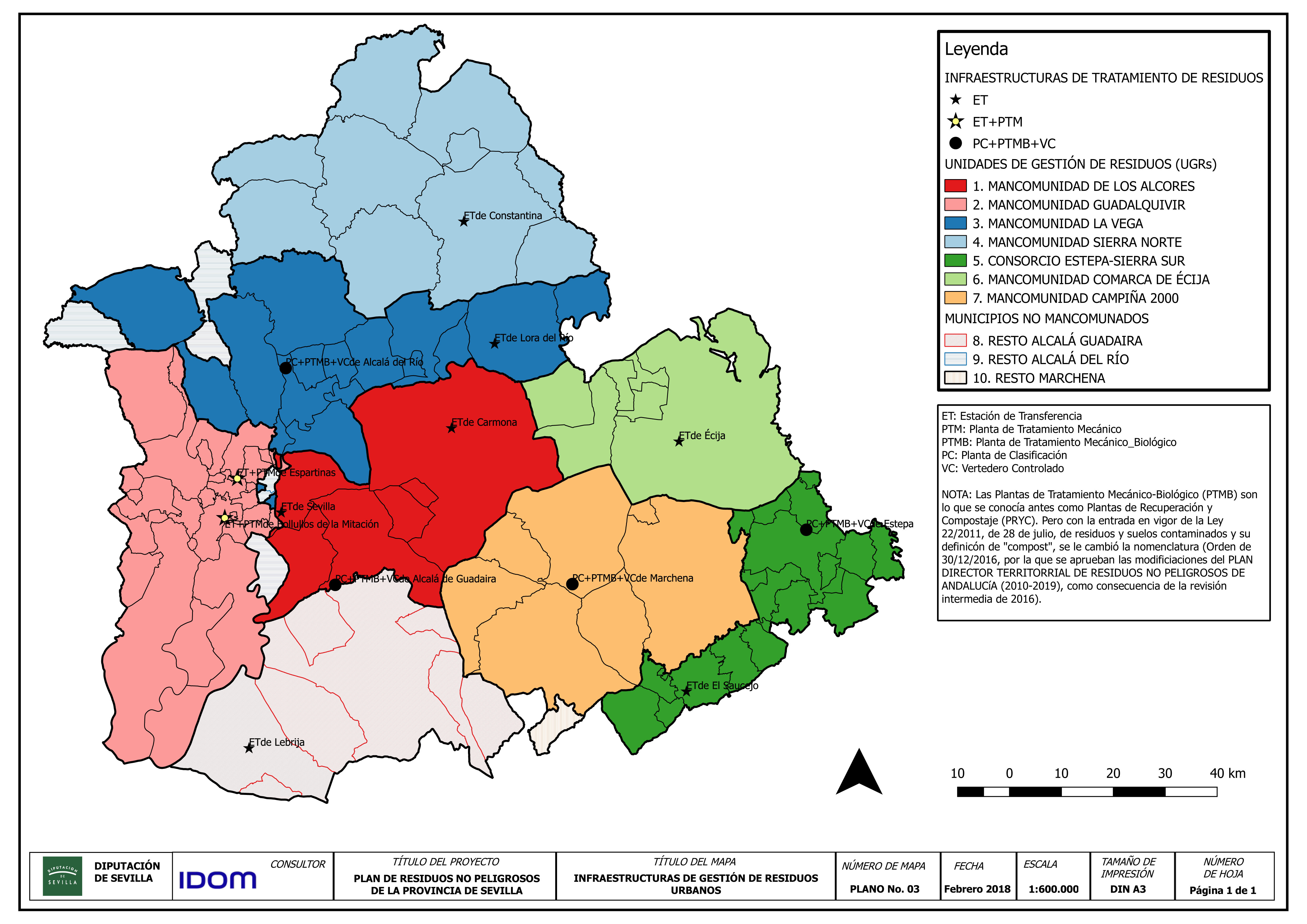 El ámbito geográfico del plan es la provincia de Sevilla. La provincia de Sevilla es la más grande en superficie (14.036 km2) y la más poblada (1.939.775 habitantes) de la Comunidad Autónoma de Andalucía, conformando la 4º área metropolitana más importante de España. 106 municipios constituyen su territorio, la mayoría de los cuales pertenecen a una Unidad de Gestión de Residuos (UGR). Actualmente existen 6 Mancomunidades y 1 Consorcio con competencias en materia de residuos municipales que agrupan a 90 municipios, mientras que los 15 municipios restantes no forman parte de ninguna UGR.
