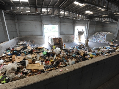 Playa de descarga de recogida selectiva de envases ligeros en planta de La Vega.