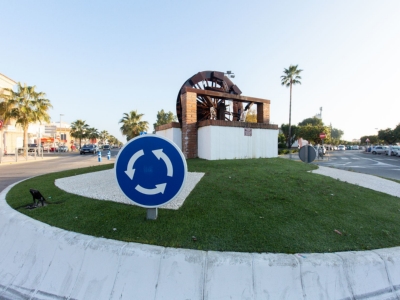 Noria decorativa en rotonda cruce de las carreteras a villaverde del río y tocina Comarca: VEGA Municipio: Brenes Edicion: SUPERA I (2014) Ver ubicacion